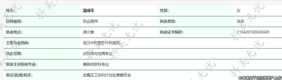 武漢中翰醫(yī)療美容執(zhí)業(yè)醫(yī)師