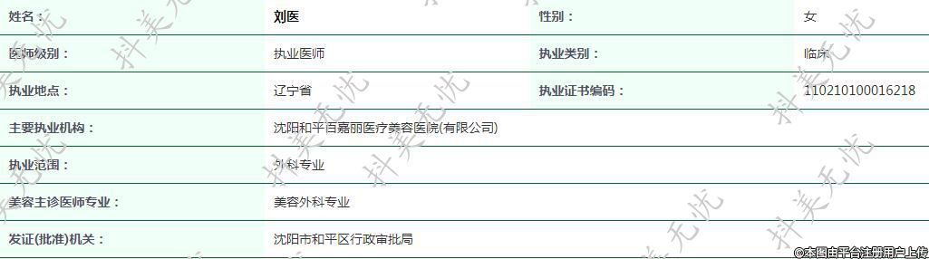 主要執(zhí)業(yè)機構(gòu):沈陽和平百嘉麗醫(yī)療美容醫(yī)院(有限公司)