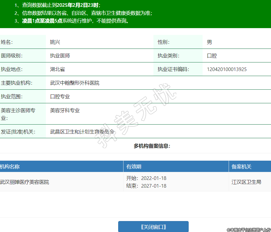 備案機關:江漢區(qū)衛(wèi)生局
