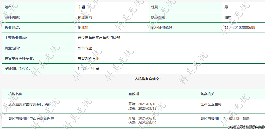 主要執(zhí)業(yè)機(jī)構(gòu):武漢星美諦醫(yī)療美容門診部