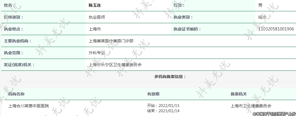 主要執(zhí)業(yè)機構(gòu):上海美萊醫(yī)療美容門診部