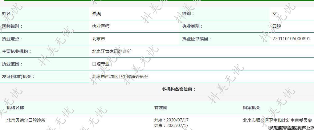 主要執(zhí)業(yè)機構(gòu):北京牙管家口腔診所
