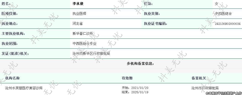 滄州水芙蓉執(zhí)業(yè)醫(yī)師 -