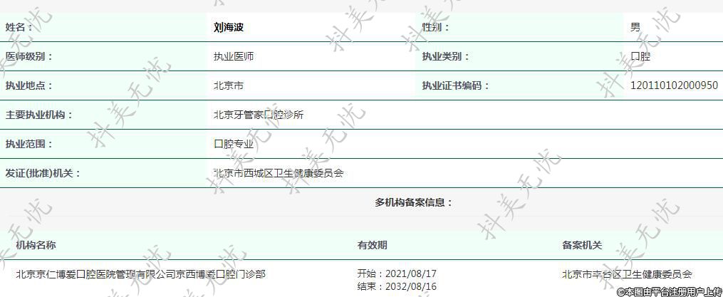 主要執(zhí)業(yè)機(jī)構(gòu):北京牙管家口腔診所