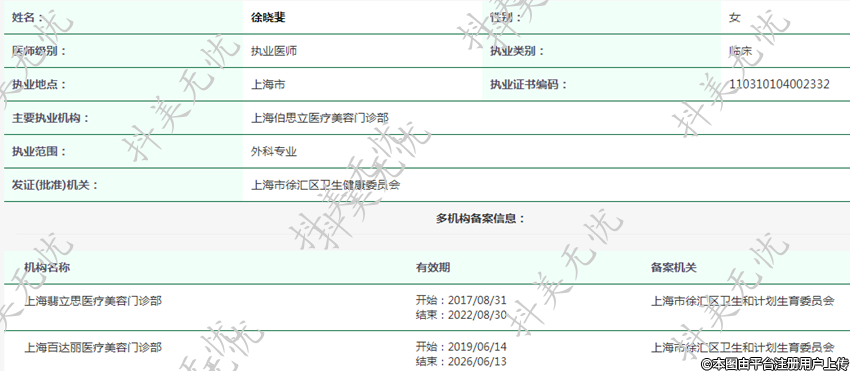 主要執(zhí)業(yè)機構(gòu):上海伯思立醫(yī)療美容門診部