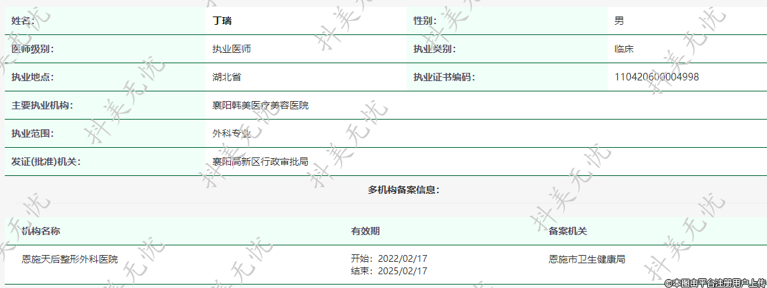 主要執(zhí)業(yè)機(jī)構(gòu):襄陽(yáng)韓美醫(yī)療美容醫(yī)院