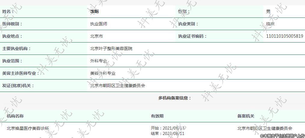 主要執(zhí)業(yè)機構:北京葉子整形美容醫(yī)院