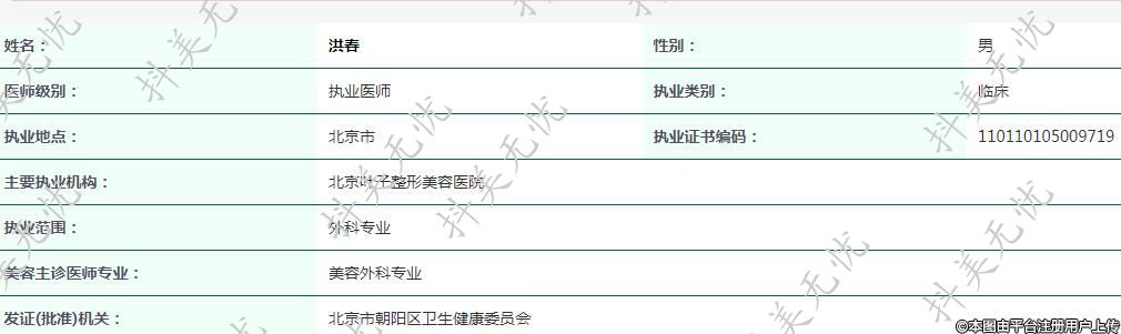 主要執(zhí)業(yè)機(jī)構(gòu):北京葉子整形美容醫(yī)院