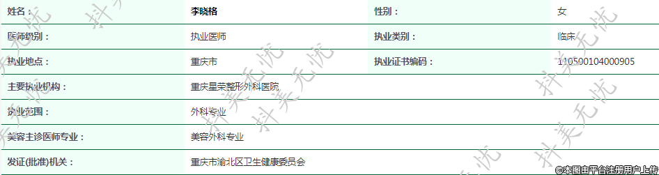 主要執(zhí)業(yè)機(jī)構(gòu):重慶星榮整形外科醫(yī)院