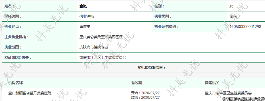 主要執(zhí)業(yè)機(jī)構(gòu):重慶美侖美奐整形美容醫(yī)院