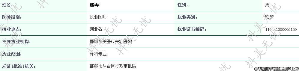 主要執(zhí)業(yè)機構:邯鄲華美醫(yī)療美容醫(yī)院