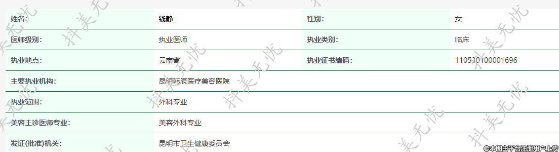 主要執(zhí)業(yè)機(jī)構(gòu):昆明韓辰醫(yī)療美容醫(yī)院