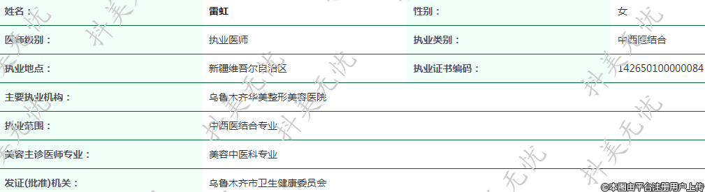 主要執(zhí)業(yè)機(jī)構(gòu):烏魯木齊華美整形美容醫(yī)院