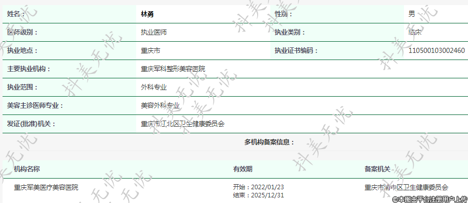 主要執(zhí)業(yè)機構(gòu):重慶軍科整形美容醫(yī)院