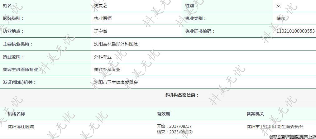 主要執(zhí)業(yè)機(jī)構(gòu):沈陽(yáng)杏林整形外科醫(yī)院