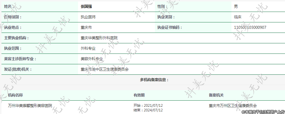 主要執(zhí)業(yè)機構(gòu):重慶華美整形外科醫(yī)院