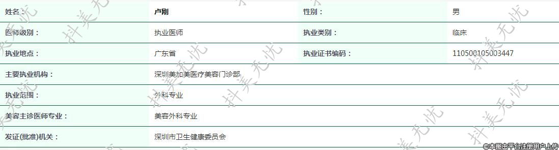 主要執(zhí)業(yè)機(jī)構(gòu):深圳美加美醫(yī)療美容門診部