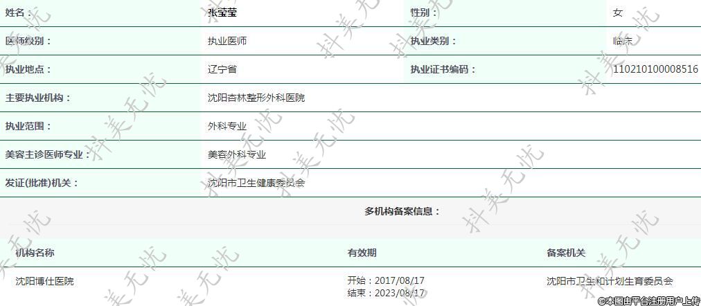 主要執(zhí)業(yè)機構:沈陽杏林整形外科醫(yī)院