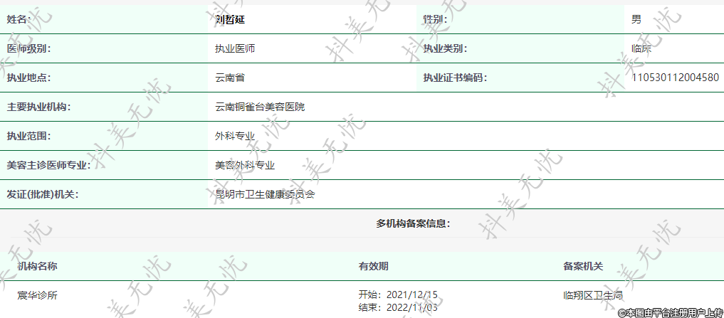 主要執(zhí)業(yè)機(jī)構(gòu):云南銅雀臺(tái)美容醫(yī)院