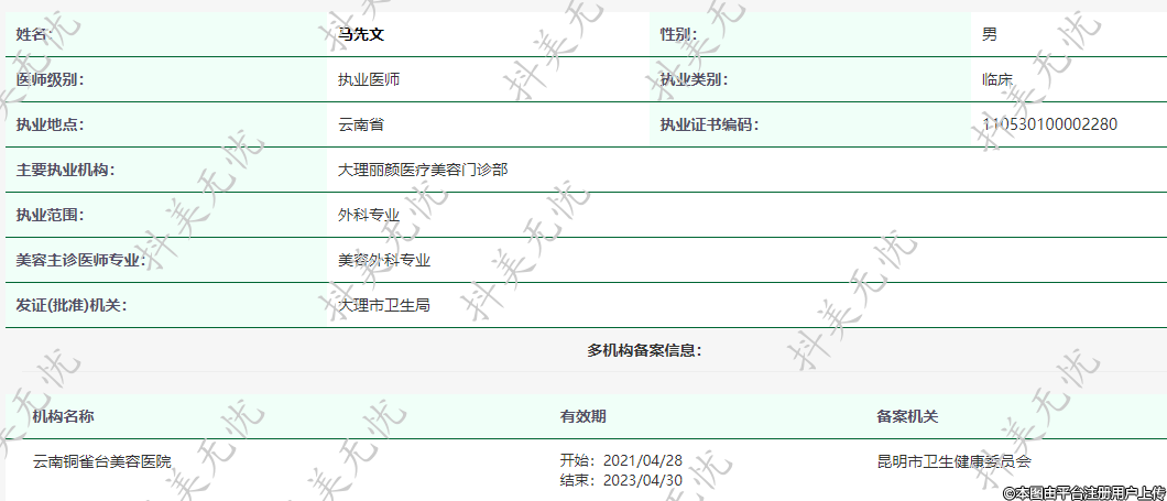 主要執(zhí)業(yè)機(jī)構(gòu):大理麗顏醫(yī)療美容門(mén)診部