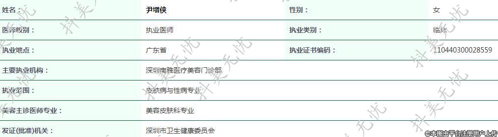 主要執(zhí)業(yè)機構(gòu):深圳南雅醫(yī)療美容門診部