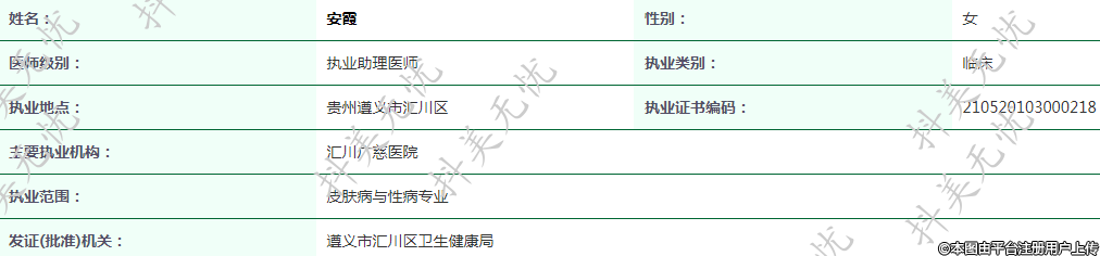 執(zhí)業(yè)范圍:皮膚病與性病專業(yè)
