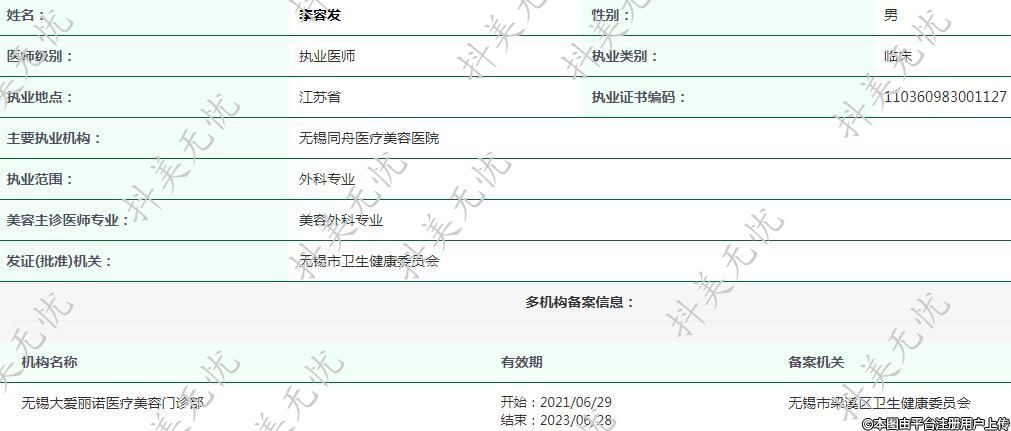 主要執(zhí)業(yè)機構(gòu):無錫同舟醫(yī)療美容醫(yī)院