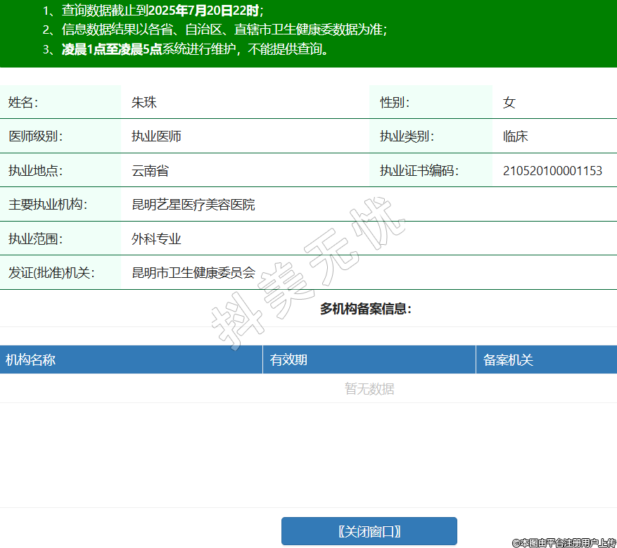 現(xiàn)任興義時(shí)光美容醫(yī)院執(zhí)業(yè)醫(yī)師