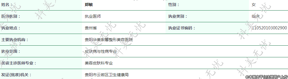 主要執(zhí)業(yè)機(jī)構(gòu):貴陽華美紫馨整形美容醫(yī)院
