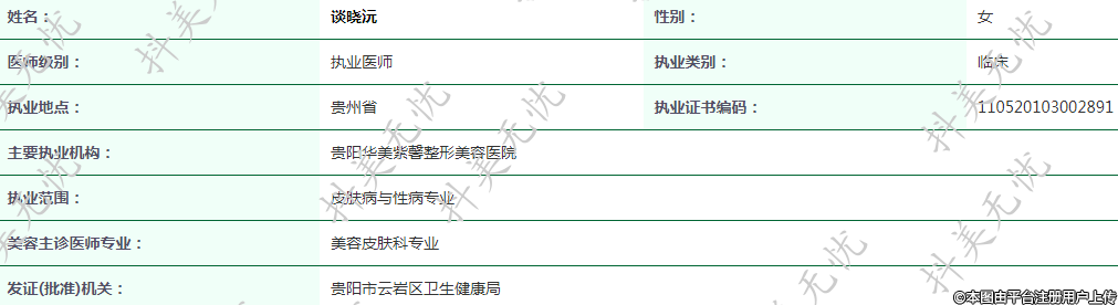 主要執(zhí)業(yè)機構:貴陽華美紫馨整形美容醫(yī)院