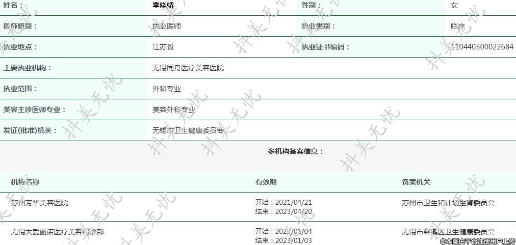 主要執(zhí)業(yè)機(jī)構(gòu):無錫同舟醫(yī)療美容醫(yī)院