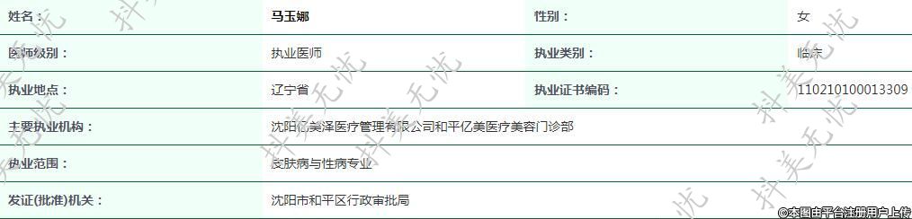 主要執(zhí)業(yè)機(jī)構(gòu):沈陽億美澤醫(yī)療管理有限公司和平億美醫(yī)療美容門診部
