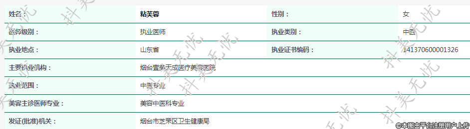 主要執(zhí)業(yè)機(jī)構(gòu):煙臺(tái)壹美天成醫(yī)療美容醫(yī)院