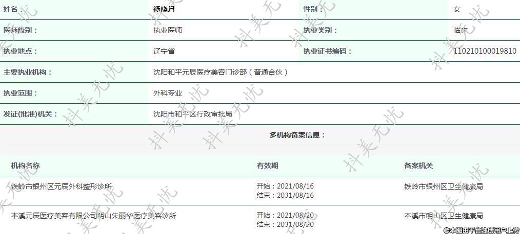 主要執(zhí)業(yè)機(jī)構(gòu):沈陽和平元辰醫(yī)療美容門診部(普通合伙)