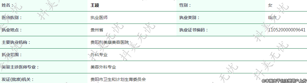 主要執(zhí)業(yè)機構:貴陽利美康美容醫(yī)院
