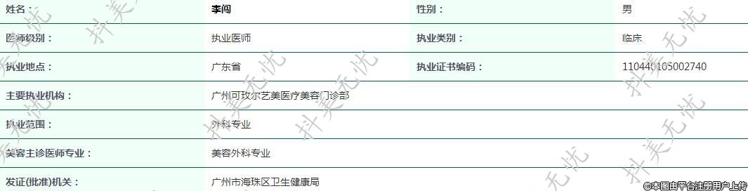 主要執(zhí)業(yè)機(jī)構(gòu):廣州可玫爾藝美醫(yī)療美容門診部