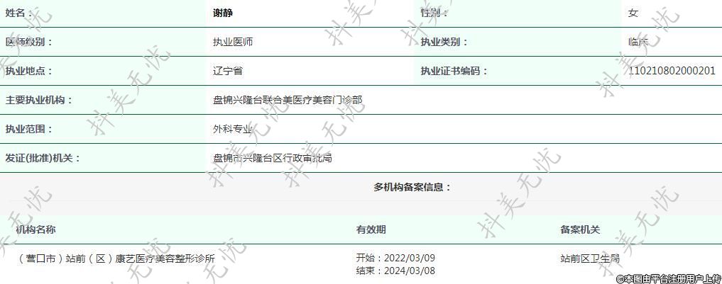主要執(zhí)業(yè)機構(gòu):盤錦興隆臺聯(lián)合美醫(yī)療美容門診部