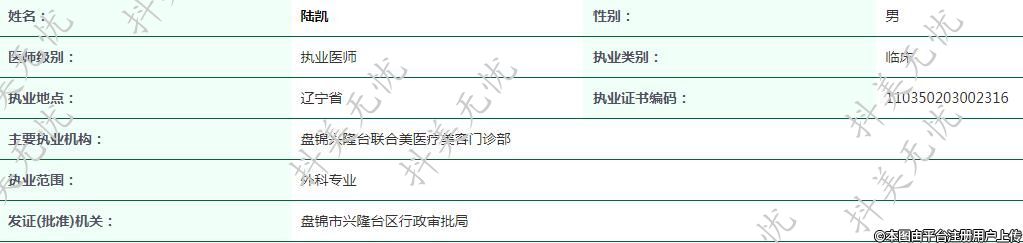 主要執(zhí)業(yè)機(jī)構(gòu):盤錦興隆臺聯(lián)合美醫(yī)療美容門診部