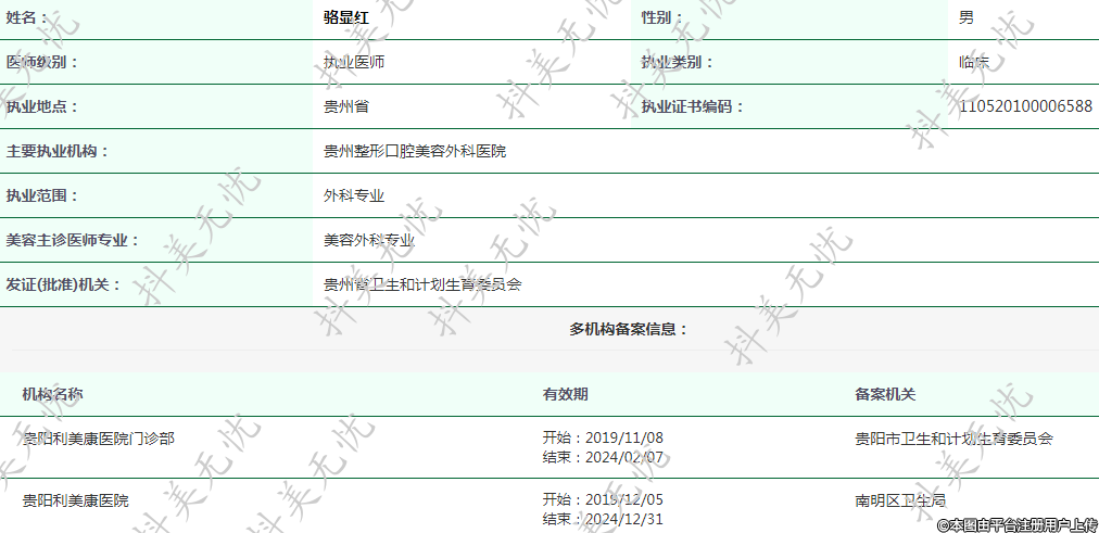 主要執(zhí)業(yè)機構(gòu):貴州整形口腔美容外科醫(yī)院