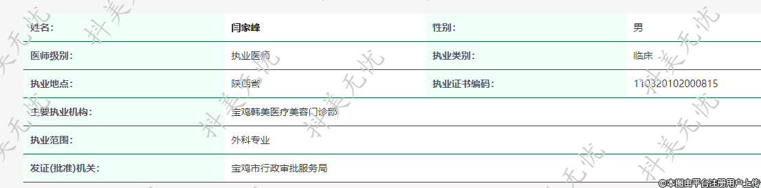 主要執(zhí)業(yè)機(jī)構(gòu):寶雞韓美醫(yī)療美容門(mén)診部