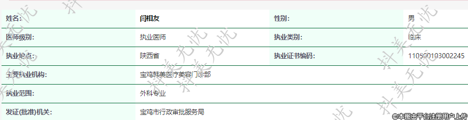 主要執(zhí)業(yè)機(jī)構(gòu):寶雞韓美醫(yī)療美容門診部