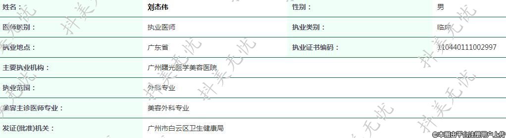 主要執(zhí)業(yè)機(jī)構(gòu):廣州曙光醫(yī)學(xué)美容醫(yī)院