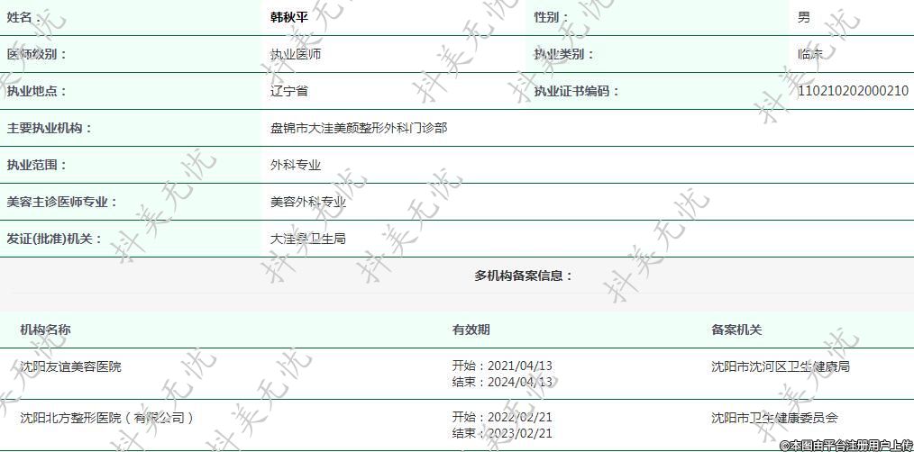 主要執(zhí)業(yè)機構:盤錦市大洼美顏整形外科門診部