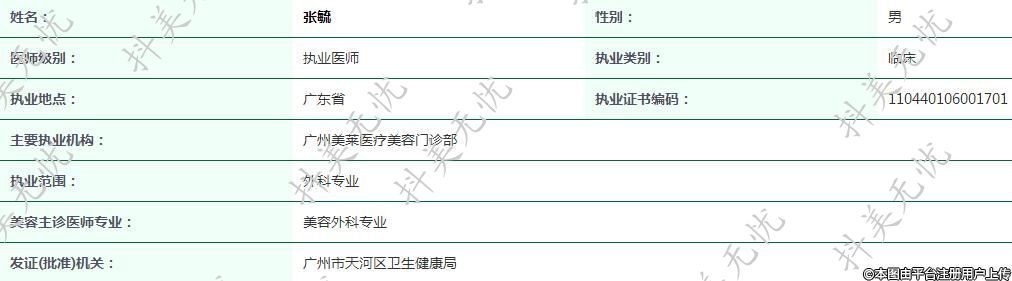 主要執(zhí)業(yè)機構(gòu):廣州美萊醫(yī)療美容門診部