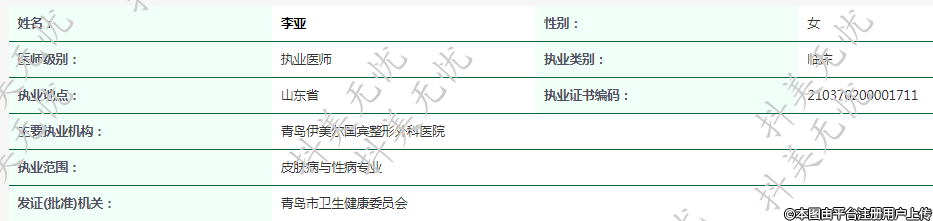 就職于青島伊美爾國賓整形外科醫(yī)院