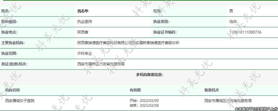 主要執(zhí)業(yè)機構:陜西泰瑞德醫(yī)療美容科技有限公司西安灞橋泰瑞德醫(yī)療美容診所