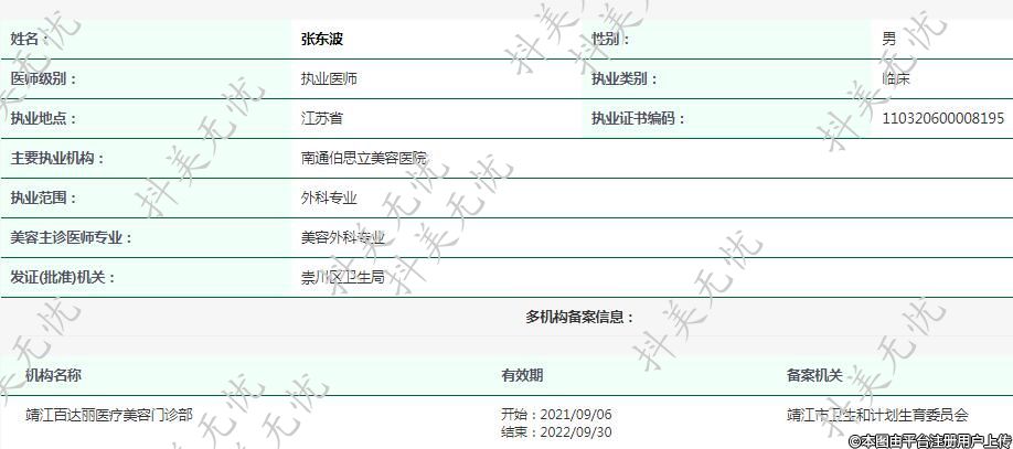 主要執(zhí)業(yè)機(jī)構(gòu):南通伯思立美容醫(yī)院