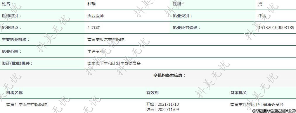 主要執(zhí)業(yè)機(jī)構(gòu):南京美貝爾美容醫(yī)院