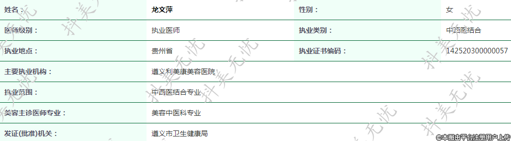 主要執(zhí)業(yè)機(jī)構(gòu):遵義利美康美容醫(yī)院