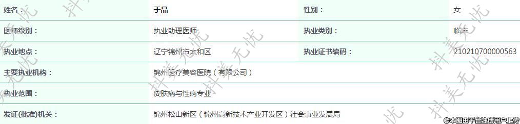 主要執(zhí)業(yè)機構(gòu):錦州醫(yī)療美容醫(yī)院(有限公司)
